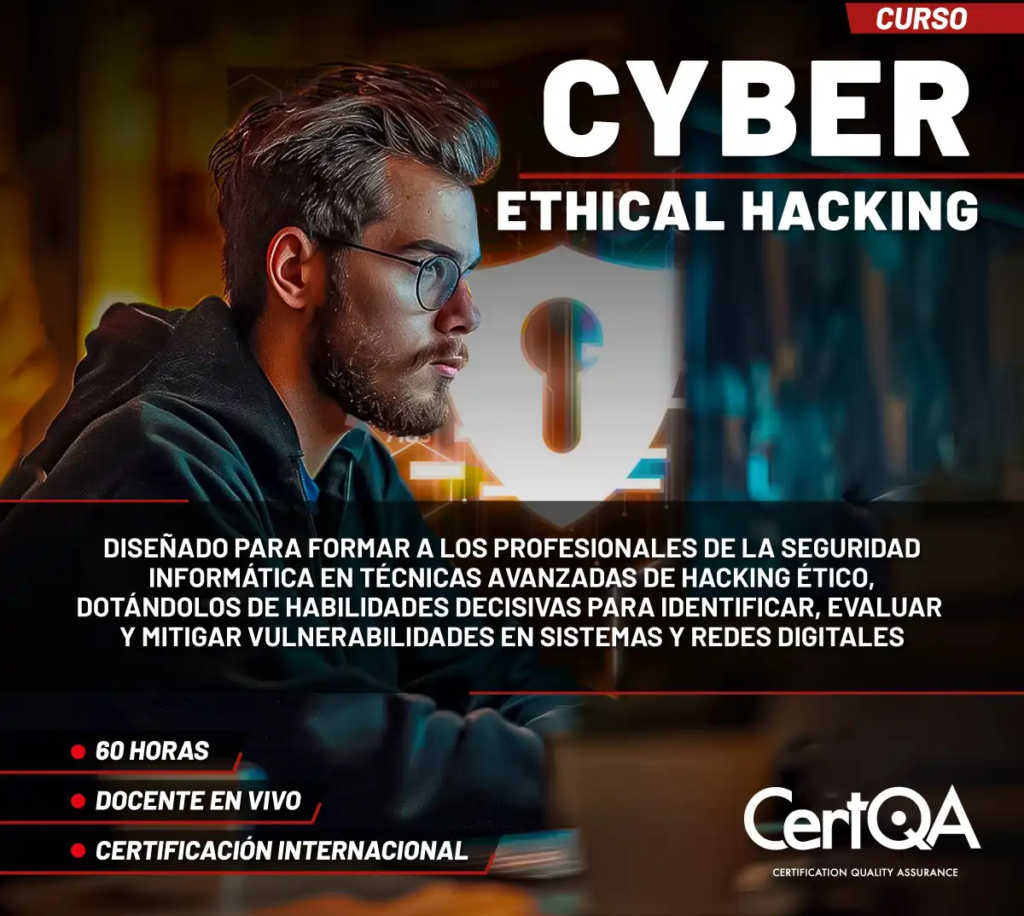 - Formación de 60 horas por instructor experto en hacking ético y Ciberseguridad certificado.